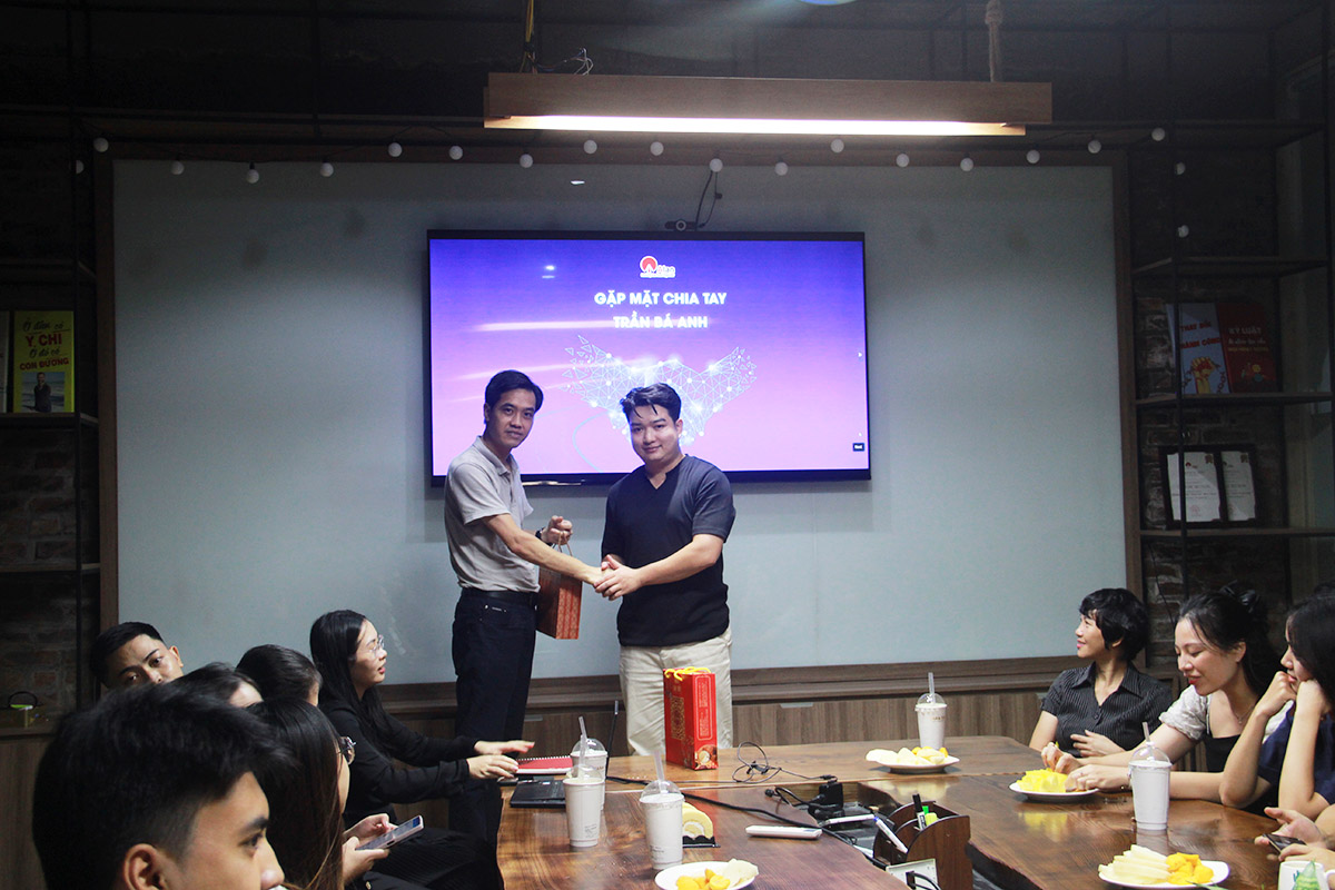 Sau phần chia sẻ, Ban lãnh đạo đã gửi tặng món quà nhỏ như lời cảm ơn và lời chúc tốt đẹp nhất đến Bá Anh trong chặng đường mới. Những tràng pháo tay, ánh mắt lưu luyến và nụ cười chân thành đã khép lại buổi chia tay trong không khí ấm áp, thân tình.