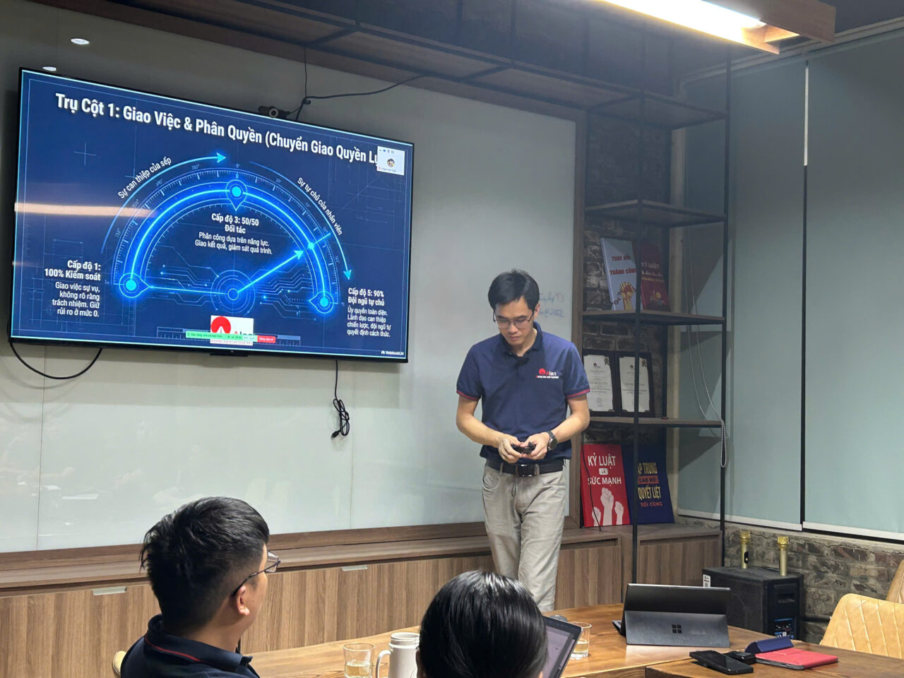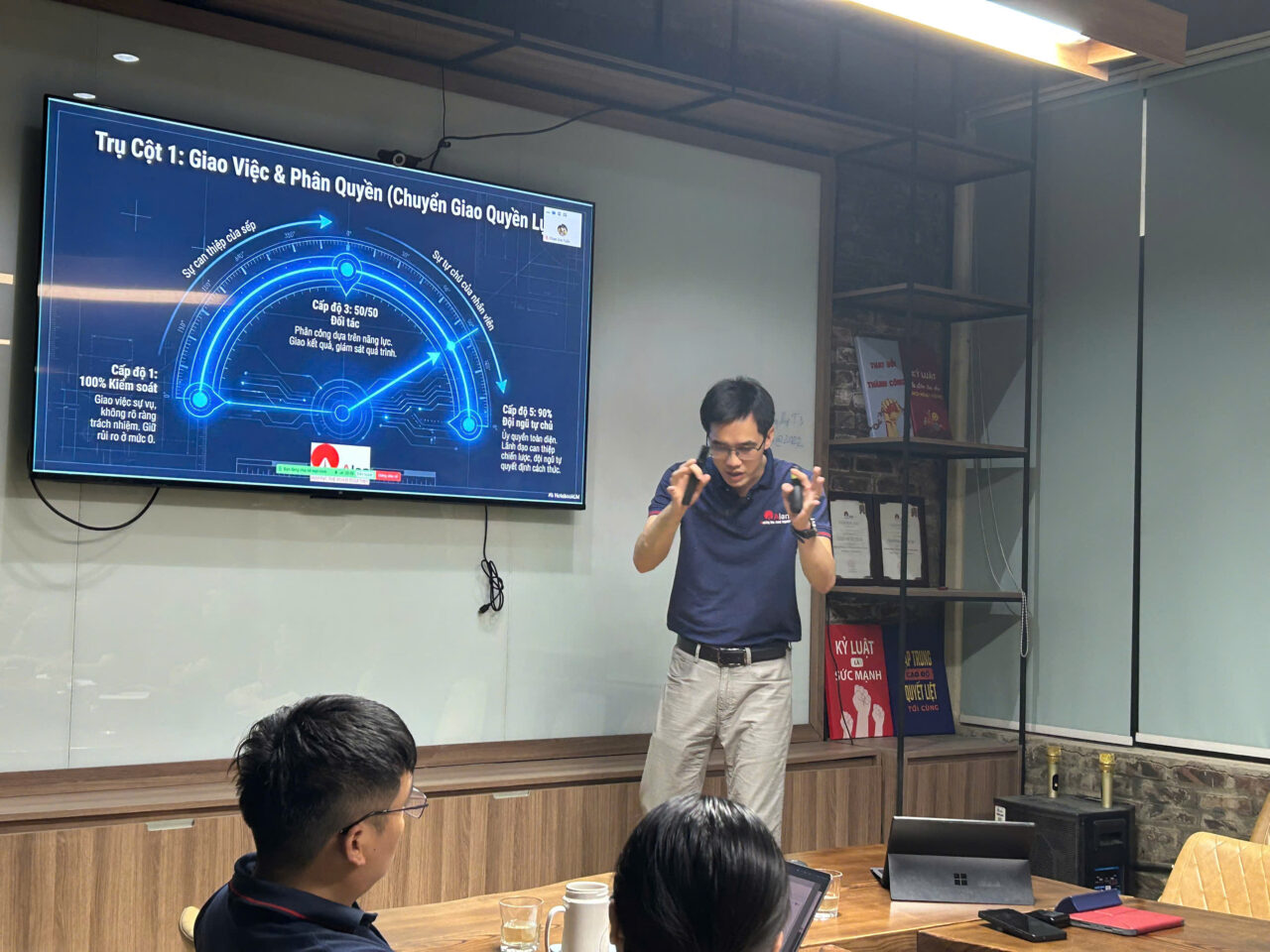 Điểm đặc biệt của chương trình nằm ở cách tiếp cận mang tính chuyển hóa: từ quản lý theo kiểm soát sang lãnh đạo bằng trao quyền. Nội dung “Giao việc & phân quyền” được khai thác sâu với các cấp độ phát triển rõ ràng, giúp học viên nhận diện vị trí hiện tại của mình trong hành trình lãnh đạo, từ đó từng bước chuyển dịch sang mô hình quản trị tin cậy, nơi đội ngũ được trao quyền, chủ động và chịu trách nhiệm. Đây chính là nền tảng để xây dựng những tổ chức linh hoạt, thích ứng nhanh và có khả năng bứt phá.