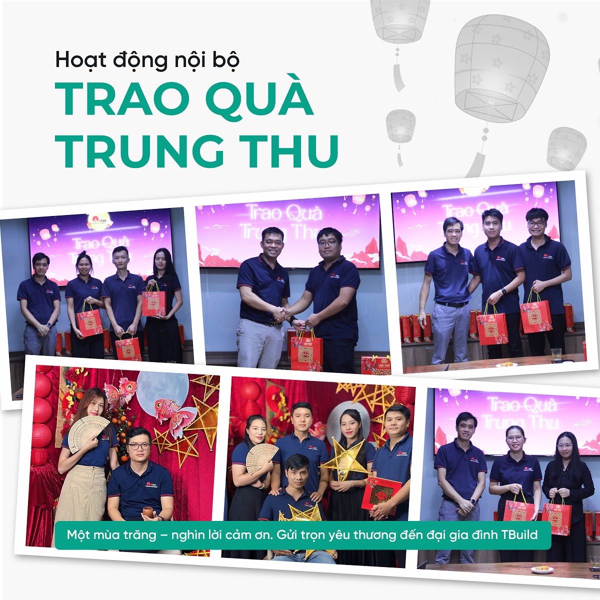 Trung Thu là Tết của đoàn viên, là dịp để người ta nhìn lại một năm đã qua với lòng biết ơn và hy vọng. T-Build tin rằng, những giá trị của sự sẻ chia và gắn kết không chỉ dừng lại trong một mùa trăng mà sẽ tiếp tục lan tỏa trong mọi hoạt động của công ty. Cũng như ánh trăng tròn vành vạnh, tinh thần của T-Build luôn hướng đến sự trọn vẹn – trong công việc, trong tình cảm và trong văn hóa doanh nghiệp.